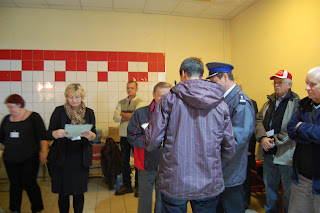 Następnie oficjalne przywitanie i mała odprawa w jednej z salek w siedzibie PZMOTu. Trzeba przyznać, że propagandowe plakaty i tablice objaśniające zasady ruchu drogowego pamiętały czasy świetności naszych Fiatów. Ależ to robiło klimat :)